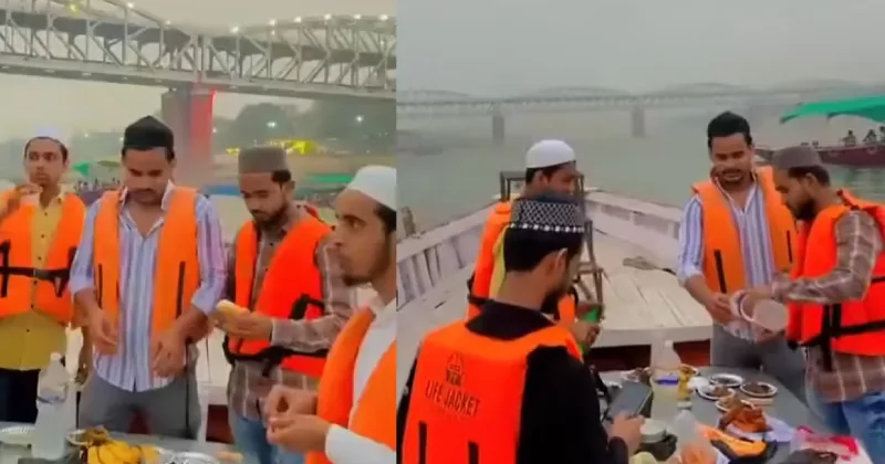 உத்தரப்பிரதேச மாநிலம், வாரணாசியில் படகில் இப்தார் விருந்து நடத்தி அசைவ உணவுகளை புனிதமான கங்கை ஆற்றில் வீசியதாக 14 பேரை போலீசார் கைது செய்தனர்.