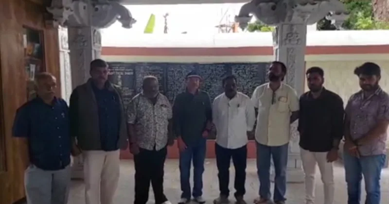கந்த சஷ்டி கவசம் கல்வெட்டில் அரசியல் சார்ந்த எந்த ஒரு பெயரும் இல்லாத நிலையில், அதை ஏன் மூடினார்கள்? என இந்து முன்னணியினர் கேள்வி எழுப்பினர்.