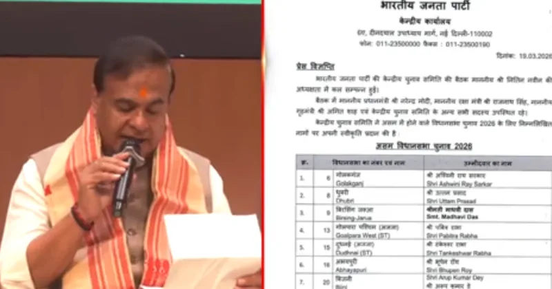 அசாம் தேர்தலுக்கான வேட்பாளர் பட்டியலை பாஜக வெளியிட்டுள்ளது.
