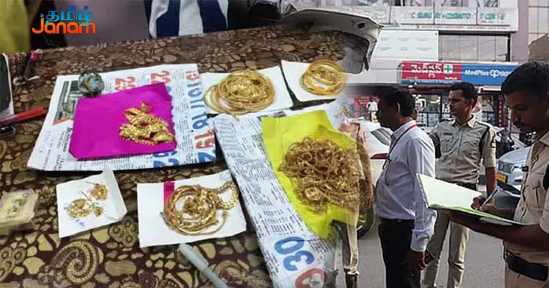 13 கிலோ தங்கம் மற்றும் 34 கிலோ வெள்ளி நகைகள் இருந்துள்ளன. இந்த நகைகள் பிரபல நகைக்கடைக்கு சொந்தமானது என்பதும், பல்லாவரத்தில் இருந்து காஞ்சிபுரம், திருவள்ளூர் மாவட்டங்களில் உள்ள 7 நகைக்கடைகளுக்கு கொண்டு செல்வதும் விசாரணையில் தெரியவந்தது.