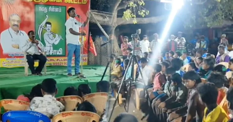 திண்டுக்கல் மாவட்டம் நிலக்கோட்டை தொகுதியில் சிறுவர்களை அழைத்து நாம் தமிழர் கட்சியின் தெருமுனை கூட்டம் நடத்தியது சர்ச்சையை ஏற்படுத்தியுள்ளது.