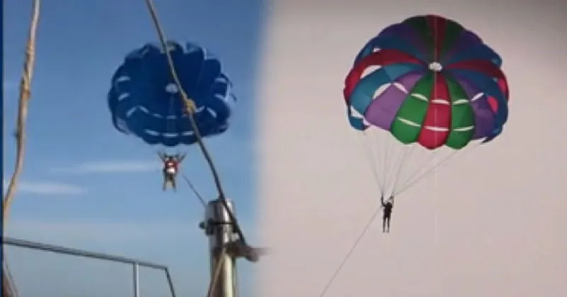 பாராசூட் மூலம் வானத்தில் உயரே பறந்து கொண்டிருந்தபோது, படகுடன் இணைக்கப்பட்டிருந்த பாதுகாப்பு கயிறு எதிர்பாராதவிதமாக பாதியிலேயே அறுந்தது. பாராசூட் நிலைதடுமாறிய நிலையில் சுமார் 50 அடிக்கும் அதிகமான உயரத்தில் இருந்து சுற்றுலாப் பயணி கடலில் விழுந்தார்.