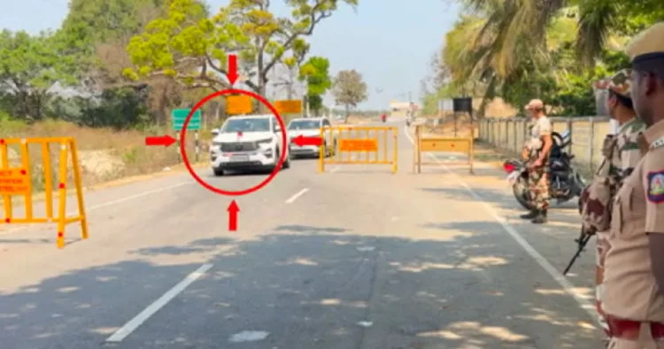 ராணிப்பேட்டை – சித்தூர் சாலை, வசூர் சோதனைசாவடி வழியாக துரைமுருகன் தனது காரில் கட்சிக்கொடியுடன் வந்துள்ளார்.