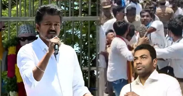 இதற்காக ஏராளமான போலீசார் பாதுகாப்பு பணியில் ஈடுபட்டிருந்தனர். அப்போது பாதுகாப்பு பணியில் இருந்த ஆயுதப்படை காவலர் சதீஷ் என்பவர் மீது தவெக நிர்வாகி ஆதவ் ஆர்ஜுனாவின் கார் மோதியது.