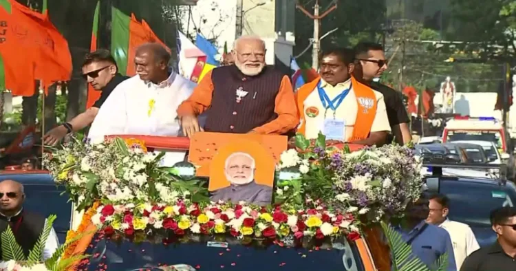புதுச்சேரியில் என்டிஏ கூட்டணி வேட்பாளர்களை ஆதரித்து பிரதமர் மோடி ரோட் ஷோ மேற்கொண்டார்.