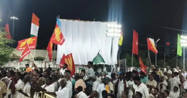 தஞ்சாவூர் திலகர் திடலில் நடைபெற்ற தேர்தல் பரப்புரை பொதுக்கூட்டத்தில், முதலமைச்சர் ஸ்டாலின், மாவட்டத்திலுள்ள எட்டு தொகுதி வேட்பாளர்களை ஆதரித்து உரையாற்றினார் . பொதுக்கூட்டம் நடைபெறும் திலகர் திடல் அருகே, உலகப் புகழ்பெற்ற தஞ்சை பெரிய கோயில் அமைந்துள்ளது. இந்நிலையில், கூட்ட மேடையிலிருந்து பார்த்தால் பெரிய கோயில் கோபுரம் தெரியாதவாறு, மிக நீண்ட மற்றும் உயரமான திரைகள் கொண்டு முழுமையாக மறைக்கப்பட்டிருந்தது அங்கிருந்த பொதுமக்களையும், சுற்றுலாப் பயணிகளையும் பெரும் அதிர்ச்சியில் ஆழ்த்தியது.