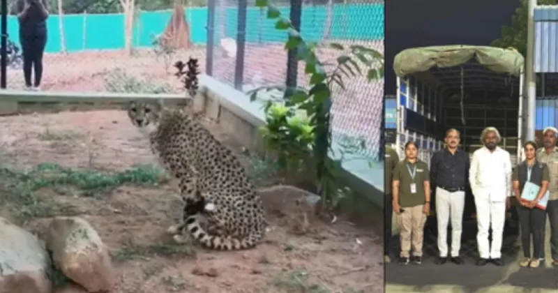 தென்னாப்பிரிக்காவிலிருந்து 4 சிறுத்தைகள் கர்நாடக மாநிலம் பெங்களூருவுக்கு கொண்டு வரப்பட்டன.