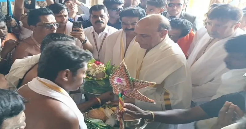 சட்டமன்றத் தேர்தல் பிரச்சாரத்திற்காக தமிழகம் வந்துள்ள மத்திய பாதுகாப்புத்துறை அமைச்சர் ராஜ்நாத்சிங், ஹெலிகாப்டர் மூலம் திருச்செந்தூர் அருகே ஆறுமுகநேரி தனியார் ஆலையில் உள்ள ஹெலிகாப்டர் தளத்தில் வந்திறங்கினார். தொடர்ந்து திருச்செந்தூர் சுப்பிரமணியசுவாமி கோயிலுக்கு கார் மூலம் வருகை தந்த ராஜ்நாத்சிங்கிற்கு, கோயில் நிர்வாகம் சார்பில் பூரணகும்ப மரியாதை அளிக்கப்பட்டது.