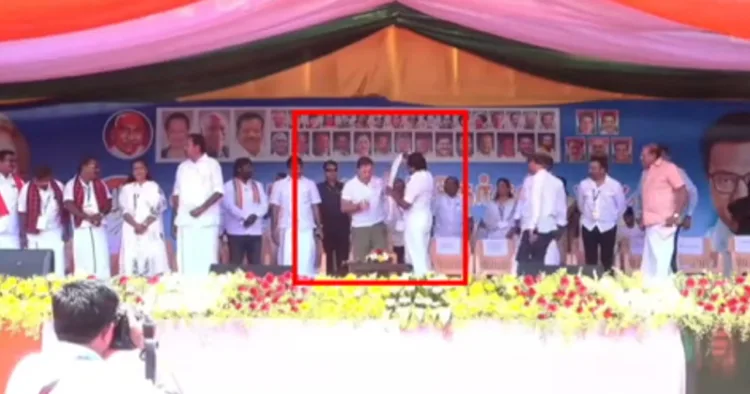 இருப்பினும் அவரை ராகுல்காந்தி கண்டுகொள்ளவில்லை. ஒருகட்டத்தில் அமைச்சர் மனோ தங்கராஜ் தாமாக முன்வந்து சால்வை அணிவிக்க முயன்றும், ராகுல் காந்தி அதனை புறக்கணித்துவிட்டு சென்றார். இச்சம்பவம் மேடையில் நின்றிருந்தவர்களிடமும், திமுக கூட்டணி வட்டாரத்திலும் சலசலப்பை ஏற்படுத்தியது.