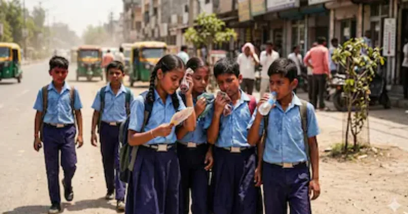 கோடை வெயில் தாக்கம் காரணமாக டெல்லியின் சுற்றுவட்டார மாவட்டங்களில் பள்ளிகளின் நேரம் மாற்றப்பட்டுள்ளது.
