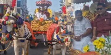 புதுச்சேரி அமைச்சர் மற்றும் எதிர்க்கட்சி திமுக MLA இருவரையும் அமர வைத்து சாரட் வண்டி ஓட்டிய மாவட்ட ஆட்சியர்
