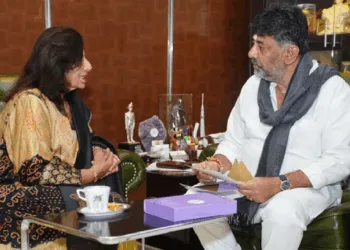 டி.கே.சிவக்குமாரை சந்தித்த தொழிலதிபர் கிரண் மஜும்தார் ஷா!