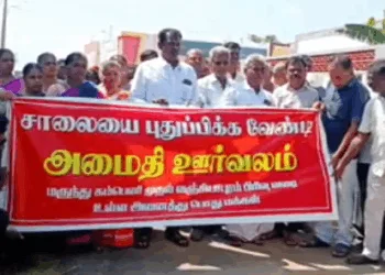 கோவை : சாலையை சீரமைக்க கோரி மக்கள் அமைதி ஊர்வலம்!