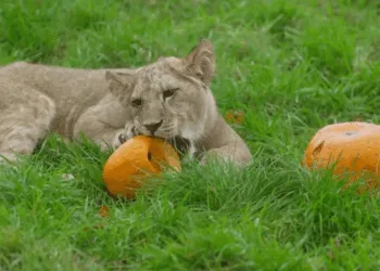 இங்கிலாந்து : ஹாலோவின் திருவிழா – பூசணிக்காய் உண்ட சிங்கம்!