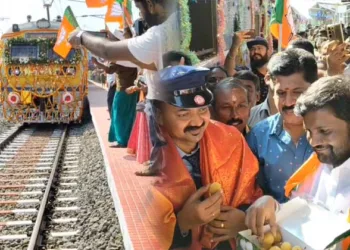 பொள்ளாச்சி வந்த புதிய ரயில்… உற்சாக வரவேற்பு அளித்த பாஜகவினர்!