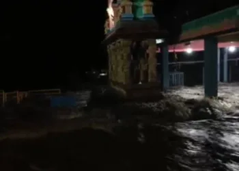 உடுமலை அருகே காட்டாற்று வெள்ளம் – அமணலிங்கேஸ்வரர் கோயிலை சூழ்ந்தபடி சென்ற நீர்!
