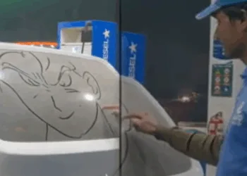 அனிம் கதாபாத்திரத்தை தத்ரூபமாக வரைந்த பெட்ரோல் பங்க் ஊழியர்!