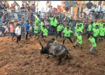 திருச்சி நவலூரில் ஜல்லிக்கட்டு – சீறிப்பாய்ந்த காளைகளை போட்டி போட்டு அடக்கிய வீரர்கள்!