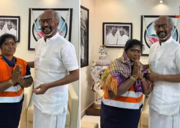 தூய்மை பணியாளர் பத்மாவுக்கு தங்கச்சங்கிலியை பரிசளித்த ரஜினிகாந்த்!