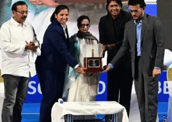 மகளிர் உலகக் கோப்பையை வென்ற இந்திய அணியில் விக்கெட் கீப்பராகச் செயல்பட்ட ரிச்சா கோஷிற்கு டி.எஸ்.பி. வேலையும் 34 லட்சத்திற்கான ரொக்க பணமும் வழங்கி மேற்கு வங்க ...