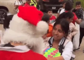 சூப்பர் ஹீரோ போல் கயிற்றில் சறுக்கிய கிறிஸ்துமஸ் தாத்தா!