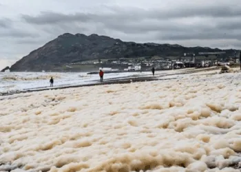 அயர்லாந்து கடற்கரையொர வீதிகளை மூழ்கடித்த கடல் நுரை – மக்கள் அச்சம்!