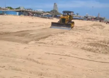 திருச்செந்தூர் சுப்ரமணிய சுவாமி கோயிலில் சூரசம்ஹாரம் வரும் 27-ம் தேதி நடைபெறுவதை ஒட்டி கடல் அரிப்பினால் சேதமடைந்த கடற்கரை பகுதிகளை சரி செய்யும் பணி தீவிரமாக நடைபெற்று ...