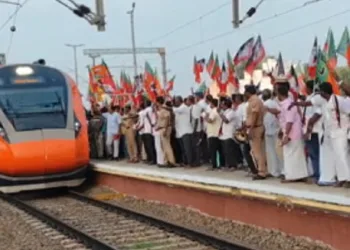 கோவில்பட்டிக்கு சென்ற வந்தே பாரத் ரயிலுக்கு உற்சாக வரவேற்பு அளித்த அதிமுக, பாஜகவினர்!