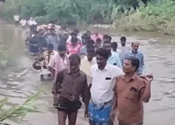 திருப்பத்தூர் : ஓடையை கடந்து சடலத்தை எடுத்து சென்ற உறவினர்கள்!