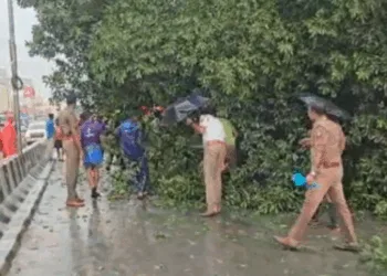திருவள்ளூர் மாவட்டம், செங்குன்றத்தில் பலத்த காற்றுடன் கூடிய மழை பெய்ததால் இரண்டு ராட்சத மரங்கள் வேருடன் சாய்ந்தன. செங்குன்றம் காவல் நிலையம் அருகே நகராட்சி நிர்வாகம் சார்பில் ...