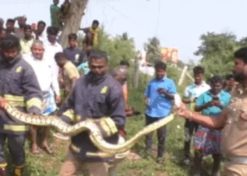 திருச்சி : சுமார் 8 அடி நீள மலைப்பாம்பை மீட்ட தீயணைப்புத்துறை!