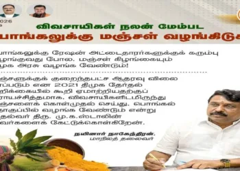 பொங்கலுக்கு மஞ்சள் வழங்கிடுக – நயினார் நாகேந்திரன் வலியுறுத்தல்!