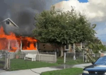 அமெரிக்கா : உயர் மின்னழுத்த கம்பி விழுந்ததில் தீ விபத்து!