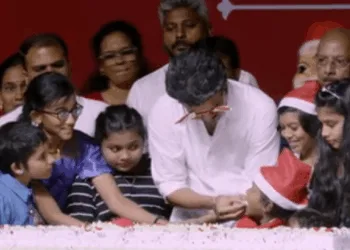 குழந்தைகளுடன் சேர்ந்து கேக் வெட்டி கொண்டாடிய விஜய்!
